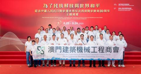 澳門建築機械工程商會理事長黃曉亮、監事長劉玉威、秘書長潘志強今日率領理監事及會員代表逾三十人參觀「抗…